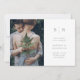 Estas elegantes y modernas invitaciones a la boda presentan un sencillo diseño de texto en blanco y verde sabio que exueve el estilo minimalista, con dos de sus fotos personales favoritas. Más detalles del boda o sitio web pueden ir por la parte de atrás. Añada sus iniciales o su monograma para hacerlas completamente propias.