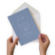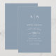Estas elegantes y modernas invitaciones nupciales presentan un diseño de textos en blanco y azul polvorientos que rebosa de estilo minimalista. Añada sus iniciales o su monograma para hacerlas completamente propias.