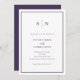 Estas elegantes y modernas invitaciones a la boda presentan un sencillo diseño de texto minimalista blanco, con texto morado oscuro y un marco clásico en el borde. Añada sus iniciales o su monograma para hacerlas completamente propias.