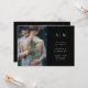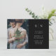 Estas elegantes y modernas invitaciones nupciales presentan un sencillo diseño de texto en blanco y negro que exueve el estilo minimalista, con dos de tus fotos personales favoritas. Más detalles del boda o sitio web pueden ir por la parte de atrás. Añada sus iniciales o su monograma para hacerlas completamente propias.