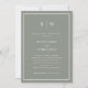 Estas elegantes y modernas invitaciones a los bodas para la cena presentan un sencillo diseño minimalista de textos en blanco y verde sabio, con un marco clásico en el borde. Añada sus iniciales o su monograma para hacerlas completamente propias.