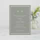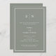 Estas elegantes y modernas invitaciones al brunch postboda presentan un sencillo diseño de texto minimalista en blanco y verde sabio, con un marco clásico en el borde. Añada sus iniciales o su monograma para hacerlas completamente propias.