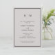 Estas elegantes y modernas invitaciones a la fiesta de compromiso cuentan con un sencillo diseño de texto minimalista gris y negro, con un marco clásico en el borde. Añada sus iniciales o su monograma para hacerlas completamente propias. La parte posterior de la invitación incluye su foto personal favorita, además de un código QR escaneado.