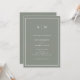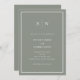 Estas elegantes y modernas invitaciones a la boda presentan un sencillo diseño de texto minimalista verde sabio, con texto en blanco y un marco clásico en el borde. Añada sus iniciales o su monograma para hacerlas completamente propias.