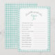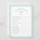 Título del juego editable y preguntas de texto para ducha de bebé o ducha de novia. Presenta una proa pintada a mano con marco y respaldo de color Mint Green.
