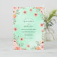 This design features a refreshing mint green watercolor backdrop that creates a soft and airy feel. Delicate peach poppies and blush pink roses are artfully scattered, complemented by soft sage green foliage. The hand-painted botanical elements evoke a romantic and whimsical atmosphere, perfect for a seasonal nature-themed event.