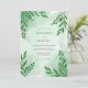 This design features a blend of soft mint and sage green watercolor washes for an airy atmosphere. Delicate illustrations of eucalyptus and willow foliage are layered over the artistic background for a fresh botanical look. This organic aesthetic is perfect for an outdoor spring or summer event. Deep emerald green accents add depth to the ethereal greenery.