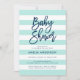 Invitación Mint Pastel y rayas blancas Baby Shower azul