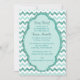 La invitación a la fiesta de 40 años de moda para una mujer presenta un patrón Chevron con menta acuática y purpurina de menta acuática en blanco alternando con un toque elegante y encantador. El texto está listo para que usted pueda personalizar con la información de su fiesta. La tarjeta de vuelta tiene un diseño similar.