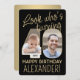 ¡Mira quién cumple 40 años! Invitar a la familia y amigos a una elegante celebración de cumpleaños número 40 para él o ella con invitaciones a fiestas de personalizado 2. Las imágenes y la redacción de esta plantilla son fáciles de personalizar. (IMAGEN PLACEMENT TIP: Una manera fácil de posicionar una foto exactamente como quieres es recortarla antes de subir al sitio web de Zazzle. Si necesitas ayuda adicional, por favor envíame un mensaje :) El diseño en negro y oro incluye dos fotos de tu elección, caligrafía de escritura moderna y tipografía de arte vintage elegante. Tenga en cuenta que el oro es color impreso, no Relieve metalizado metálico. El diseño único y neutral en materia de género también es adecuado para un hombre o una mujer. ¡Feliz cuadragésimo cumpleaños!