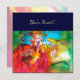 Personaje colorido, caprichoso y vibrante de máscara veneciana. Una hermosa y sofisticada mujer rubia está sentada con una rosa roja y una máscara emplumada en mano con telas doradas y fucsias brillantes de un disfraz de máscara barroca con plumas y un perro. Pintura en acuarela con colores brillantes en amarillo, azul, rosa, verde, destellos dorados y hoja de plata, inspirada en personajes de la Comedia del Arte (Commedia dell'Arte), Carnaval de Venecia y máscaras de plumas venecianas. Este diseño fresco y artístico es perfecto para bodas, ceremonias nupciales, fiestas de compromiso, dulces 16, fiestas de cumpleaños de quinceañera, fiestas de disfraces de Halloween, bailes de disfraces, compromisos románticos, anuncios de "save the date", fiestas de oficina, reuniones familiares