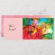 Colorido, caprichoso y vibrante personaje veneciano de mascarada. Hermosa y sofisticada mujer rubia está sentada con una rosa roja y una máscara de plumas en la mano con telas de fucsia dorada brillante de un barroco disfraz de pelota enmascarada con plumas y un perro. Pintura acuarela de colores vivos en , rosa amarillo azul, verde, chispas doradas y Relieve metalizado plateado , inspirada en personajes de la Comedia del Arte ( Commedia dell' Arte ) , Carnaval de Venecia y máscaras de plumas venecianas. Este diseño fresco y artístico es perfecto para bodas, ceremonias nupciales, duchas de novias, dulces 16,fiestas de cumpleaños quinceanera, fiestas de disfríos, bolas de baile, compromisos románticos, guardar los anuncios de fechas, fiesta de la oficina de vacaciones, reuniones familiares, cócteles, celebraciones de vísperas del día de Año Nuevo, aniversarios, reuniones, conciertos, recitales o casi cualquier evento que desee.