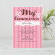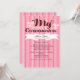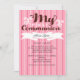 Comienza tu celebración con esta invitación a la Santa Comunión de chicas especiales. El fondo tiene varios colores de rayas rosas. En la parte superior del centro está "Mi Primera Comunión" en una fuente grande Debajo hay un banner donde se personaliza con el nombre del chica. Agregue la información de su fiesta debajo de esa para personalizar. Consulte los muchos otros elementos de esta línea, como etiquetas, franqueo, notas de agradecimiento y más.