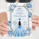 Invitación Mis Quince Blue Floral Silver Crown Quinceañera