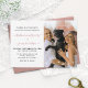 ¡Mis seres humanos se casan! Deje que el "mascota de honor" anuncie a su boda con este lindo y divertido diseño de bodas de fotos de mascotas blancos, dorados y rosas con tipografía de escritura moderna y huellas de pata al final de su foto. Añade tu propio toque especial con tus nombres (en oro), fecha de boda, ubicación y foto favorita de ti y de tus mejores mascotas. Perfecto para un boda que involucre a su mascota o mascotas, ya que también caminarán por el pasillo.