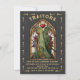 Invitaciones para una fiesta de misterio y asesinato de "TRAIDORES" inspirada en cartas de tarot. Cuenta con un hombre y una mujer de vidrio emplomado con capas y armas en un marco de ventana estilo iglesia con un fondo negro texturizado falso claro. Detalles dorados falsos. Perfecto para Halloween, una noche bajo las estrellas, cósmico, horóscopo, gótico o una noche mágica y mística de asesinato divertido. Todo el texto se puede cambiar. Dorado falso. Para hacer más cambios, vaya a Personalizar esta plantilla. En la parte inferior, verá "¿Quiere personalizar aún más este diseño? Haga clic en EDITAR utilizando la herramienta de diseño. Desde allí, puede cambiar algunas de las fuentes y algunos colores, mover cosas o eliminar lo que necesite.
