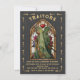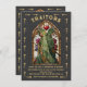 Invitaciones para una fiesta de misterio de asesinato "TRAIDORES" inspiradas en cartas de tarot. Cuenta con un hombre y una mujer de vidrio emplomado con capas y armas en un marco de ventana estilo iglesia con un fondo negro texturizado falso claro. Detalles dorados falsos. Perfecto para Halloween, una noche bajo las estrellas, cósmico, horóscopo, gótico o noche mágica mística de asesinato divertido. Todo el texto se puede cambiar. Dorado falso. Para hacer más cambios, vaya a Personalizar esta plantilla. En la parte inferior verás "¿Quieres personalizar aún más este diseño? Haz clic en EDITAR utilizando la herramienta de diseño. Desde allí puedes cambiar algunas de las fuentes y algunos colores, mover cosas o eliminar lo que necesites.