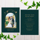 Místico Feliz Ever tras la celebración del Día del Sol Verde Luna de Astronomía Boda Invitaciones a la recepción Invitaciones a la presentación de Einvitaciones con sol dorado, luna y estrellas con un marco dorado sobre un fondo verde con tu foto favorita dentro. Personalice la información de la recepción de la boda. Disponible como una invitación física en papel y una descarga instantánea de invitaciones digitales imprimibles. Diseñado por Evco Studio www.zazzle.com/store/evcostudio