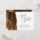 Esta elegante y moderna tarjeta de fecha guarda un rizo de acuarela marrón mocha recortado con un falso purpurina de oro. El texto del personalizable combina el guión de escritura a mano gris carbón, el copperplate y las fuentes cursivas en un fondo blanco. El reverso presenta un diseño de agate marrón y dorado a juego.