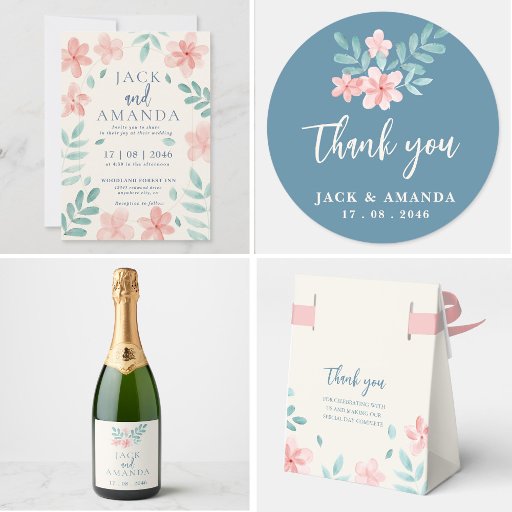 Invitación Moda acuarela Boda floral rosa Guardar fecha