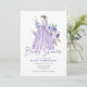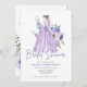 Invitación Moda acuarela Morado Flor Script Ducha de novia