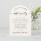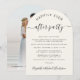 Elegante estilo crema en forma de arco o invitación boda más pequeña e invitación a la recepción. La parte delantera presenta "Feliz eterno después del Fiesta" en una mezcla de tipografía simple y un guión de moda con toques, tu invitación matrimonial e invitación a la recepción, y tus nombres en un guión característico. En la parte trasera, la foto se ve rebosante con los nombres de sus bodas y la fecha de recepción junto con el corazón.