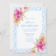 Esta atractiva invitación cuenta con un impresionante ilustracion acuático de una flor de lirio rosa y un marco azules de cerámica Azulejo portugués. Se puede personalizar fácilmente el texto e incluir la edad del celebrante para hacerlo aún más personalizado. Comparte la alegría con tus amigos y familia y haz que este cumpleaños sea un hito para recordar!