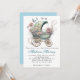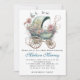 Moda azul y rosa buggy floral curvo invitación a la ducha bebé. ¡Esta es una invitación para un principito!