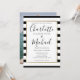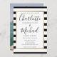 Elegante invitación a la boda a rayas blancas y negras con nombres de estilo característico, esta elegante invitación a la boda puede ser personalizada con su información en letras de moda y su foto especial al revés. Diseñado por Thisisnotme©