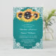 Elegantes invitaciones verde azuladas personalizadas de boda perfectas para su rústica fiesta de boda verde azulada inspirada en flores de girasol. Personalice fácilmente esta tarjeta boda verde azulada con los detalles de su boda.