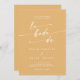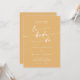Esta moda amarilla de bodas color amarillo caléndulo código QR invitación a una boda española es perfecta para un boda minimalista. El diseño bohemio moderno, audaz y amarillo brillante, presenta una caligrafía rústica sencilla con un estilo único y clásico. Incluya un código QR en la parte posterior de la invitación para que el invitado pueda ver fácilmente RSVP, ver detalles o ambos.