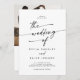 Esta moda de bodas en blanco y negro y la invitación a la boda con código QR es perfecta para un boda minimalista. El moderno diseño bohemio blanco y negro presenta una caligrafía rústica sencilla con un estilo único y clásico. Perfecto para cualquier temporada: primavera, verano, otoño o invierno. Personaliza la parte posterior de tu invitación de boda con tu foto favorita de compromiso. Incluya un código QR para que el invitado pueda obtener fácilmente RSVP, ver detalles o ambos.