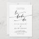 Esta moda de bodas en blanco y negro, código QR, es perfecta para un boda minimalista. El moderno diseño bohemio blanco y negro presenta una caligrafía rústica sencilla con un estilo único y clásico. Perfecto para cualquier temporada: primavera, verano, otoño o invierno. Incluya un código QR en la parte posterior de la invitación para que el invitado pueda ver fácilmente RSVP, ver detalles o ambos.