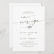 Esta moda verde y blanco código QR invitación a la boda francesa es perfecta para un boda minimalista. El diseño bohemio moderno blanco y verde oliva neutra presenta una caligrafía rústica sencilla con un estilo único y clásico. Incluya un código QR en la parte posterior de la invitación para que el invitado pueda ver fácilmente RSVP, ver detalles o ambos.