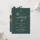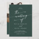 Esta foto verde esmeralda de moda boho y la invitación a la boda en código QR es perfecta para un boda minimalista. El bosque de cazadores negros y húmedos de diseño bohemio moderno presenta una caligrafía rústica sencilla con un estilo único y clásico. Personaliza la parte posterior de tu invitación de boda con tu foto favorita de compromiso. Incluya un código QR para que el invitado pueda obtener fácilmente RSVP, ver detalles o ambos.