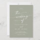 Esta foto verde de moda boho y la invitación a la boda en código QR es perfecta para un boda minimalista. El estilo bohemio moderno de tonos verde claro neutro presenta una caligrafía rústica sencilla con un estilo único y clásico. Personaliza la parte posterior de tu invitación de boda con tu foto favorita de compromiso. Incluya un código QR para que el invitado pueda obtener fácilmente RSVP, ver detalles o ambos.