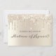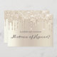 Pídele a su matrona de honor que esté en su fiesta nupcial con estilo con esta invitación de purpurina y glam. Este diseño de plantilla de moda presenta un fondo de brillantes goteos y chispas de purpurina de champán con un nombre que personalizar y la pregunta "¿Serás mi Matrón de Honor?" en escritura moderna. Diseñado por Susan Coffey.
