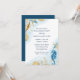 Colección boda de color azul polvoriento romántico y dorado pintado a mano "bajo el mar". El diseño se compone de conchas de concha, pez estrella, un caballito de mar y arrecife de coral que complementan los tonos azules, dorados y blanquecinos con un toque de azul que le da un efecto acuático. Los detalles de las letras modernas de color azul marino están enmarcados en la orilla acuática náutica de los elegantes corales marinos, conchas y estrellas de mar.