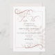 Hojas de color beige cremoso, rodeadas de un marco fino clásico y acentos giratorios en especias de canela, caligrafía de escritura manuscrita y color coordinado en reversa. Sencillo, limpio y fresco para un boda moderno.