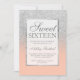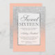 Moderna moda de bonito y elegante ducha de purpurina de color falso plateado oscuro con color melocotón. Invitación a la fiesta de 16 años dulce con y elegante marco plateado Perfecto para una princesa Dulce dieciséis.