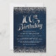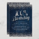 Celebrar 100 años con estas invitaciones a fiestas de cumpleaños de dinamismo y diamantes de moda incluyen las palabras "Cumpleaños 100" en un divertido tipo de escritura con pequeñas gemas de confeti en la parte superior y inferior de un fondo de denim. Diseño de The Spoted Olive™.