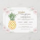 Diseño único con flores tropicales descoloridas (para un efecto vintage y espléndido), tipografía Aloha purpurina de oro, piña acuarela, símbolo de hospitalidad y de un estilo tropical exótico, esta invitación es perfecta para bodas del sur, tropicales, hawaianos o caribeños, todo tipo de bodas de destino insular. Utilice la herramienta Personalizar para agregar su información. Visita, por favor, mi Colección Aloha Pineapple Beach para artículos a juego, como RSVP, pegatinas, sellos postales, menú, programa, invitaciones a duchas de novias, etc.