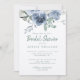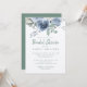 Rosa azul floral, invitación a la ducha de novia con elegante caligrafía escrita a mano y tipografía clásica, y un toque elegante de rosas pintados con acuarela en una paleta de colores azul y verde. La parte trasera de la tarjeta está en un color verde polvoriento. Diseñado exclusivamente para usted por Happy Dolphin Studio. Si necesita ayuda o productos coincidentes, por favor contáctenos a través de la charla de nuestra tienda. ¡Estamos encantados de ayudarte a que tu ducha de novia sea el día más maravilloso!