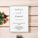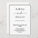 Esta elegante invitación a la boda en blanco y negro es perfecta para un boda moderno. el diseño es sencillo, con una elegante caligrafía negra sobre un fondo blanco.