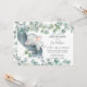 Personalice esta invitación a la ducha de bebé de moda con los detalles de su ducha de bebé de forma fácil y rápida, simplemente presione el botón de personalizar para reorganizar y formatear el estilo y la ubicación del texto. Esta caprichosa invitación incluye hojas de eucaliptos de color de agua rústico y un lindo elefante para dormir. Perfecto para dar la bienvenida a tu nuevo paquete de alegría. ¡Artículos coincidentes disponibles en la tienda! (c) El estudio Happy Cat Studio.