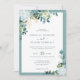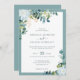 Crea la suite boda romántica perfecta con esta elegante carta de invitación con un sofisticado ramo de flores reina de noche blanca (epífilo hookeri), hojas de eucalipto de color claro y aireado y complementadas con hojas doradas brillantes (impresas) sobre un fondo blanco clásico rodeado de un marco verde azulado moderno