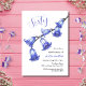 Elegante flor de color azul en una invitación de cumpleaños con fondo blanco. Fácil personalización de los detalles de nombre, edad y evento para satisfacer sus necesidades.