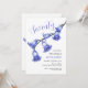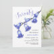 Elegante flor de color azul en una invitación de cumpleaños con fondo blanco. Fácil personalización de los detalles de nombre, edad y evento para satisfacer sus necesidades.