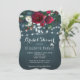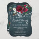 Ducha de novia rústica de invierno fiesta elegante plantilla de invitación en un pizarrón azul marino oscuro con un hermoso ramo de rosas de borgoña y peones blancos de vino tinto con follaje estacional de cazador verde, cuerdas de luces blancas de centelleo y un guión de caligrafía de moda. ++++++++++++++ Fácil de personalizar con tus detalles! +++++++++++++++ La invitación es apta para fiestas de ducha de novia rústicos de invierno elegante, de campo rústico / casa de campo / cabaña / Navidades / cabaña.