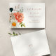 Moda y elegancia. Esta magnífica tarjeta boda salva la fecha cuenta con un ramo de flores colorido, un conjunto contemporáneo de fuentes en un rico ocre oscuro contra un fondo de marfil de moda. La plantilla se completa con un par de iniciales al lado de la parte posterior y texto adicional para el sitio web del boda si es necesario. Memorable y único, esta carta exime de elegancia, alegría y encanto.